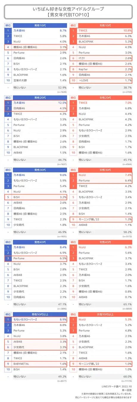 20代男性かなり差があって日向坂が上(欅含めて)